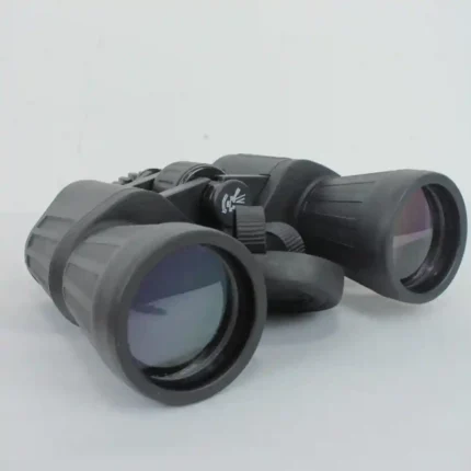 Descripción Clara: Binocular de prismas Porro con alto factor de magnificación y lente objetivo de gran apertura, optimizado para la observación de largo alcance en condiciones variadas.
