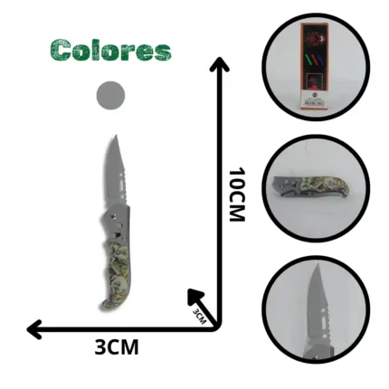 Dimensiones Cerrado (Aprox.): Aproximadamente 9-10 cm de largo (formato de bolsillo).