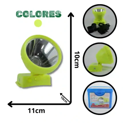 Este producto es una linterna minera recargable de alta potencia y durabilidad, ideal para su comercialización en los segmentos de ferretería, camping, seguridad, trabajo industrial y accesorios de exteriores.