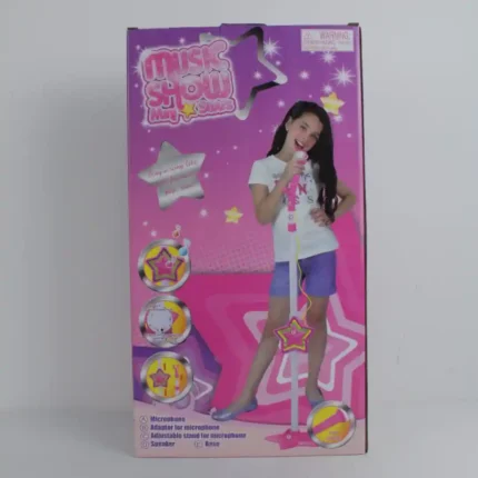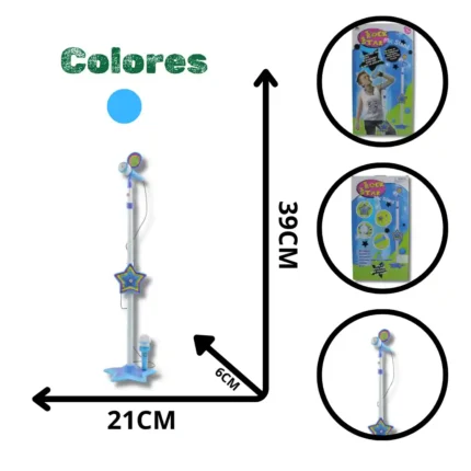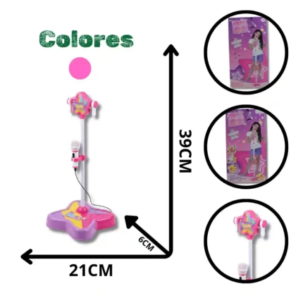 Sistema de micrófono y pedestal diseñado para el juego de roles y entretenimiento musical infantil. Permite a los niños cantar como sus estrellas pop favoritas e incluye funciones de amplificación y conexión externa para reproducir música de fondo.