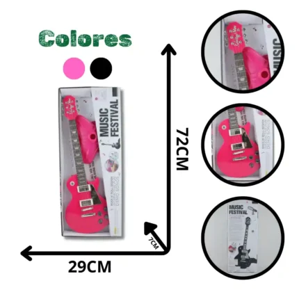 Diseño Realista: El diseño simula el look and feel de una guitarra eléctrica profesional, disponible en color rosa y negro.