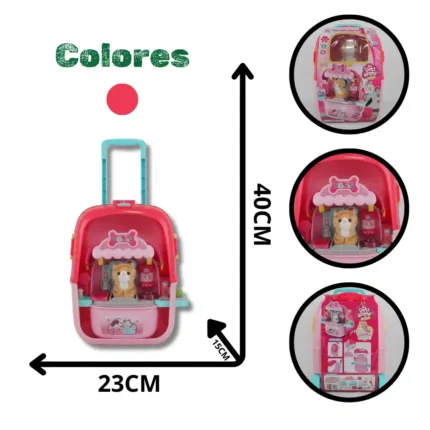 Diseño 2 en 1: La principal característica es su capacidad de transformarse de un juguete de estación de cuidado a una maleta con ruedas, facilitando el transporte y el almacenamiento.