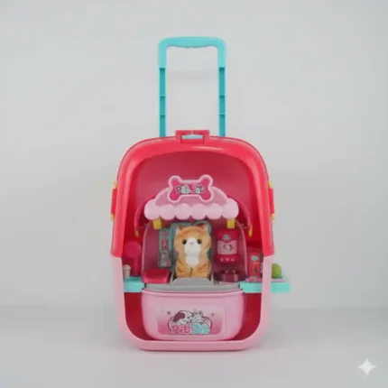 Presentamos el Set de Cuidado de Mascotas Portátil con Gato de Peluche (Pet Care Play Set). Este es un artículo de juego de rol convertible 2 en 1 que se transforma de una práctica maleta trolley a una completa estación de peluquería/veterinaria para mascotas. Es un producto de alto atractivo y excelente rendimiento para tiendas de juguetes y minoristas de regalos.