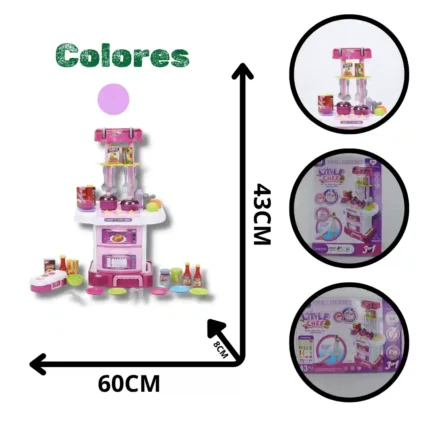 Interactivo: Incluye funciones electrónicas de luz y dos tipos de sonidos distintos en el área de la estufa. (Requiere baterías).