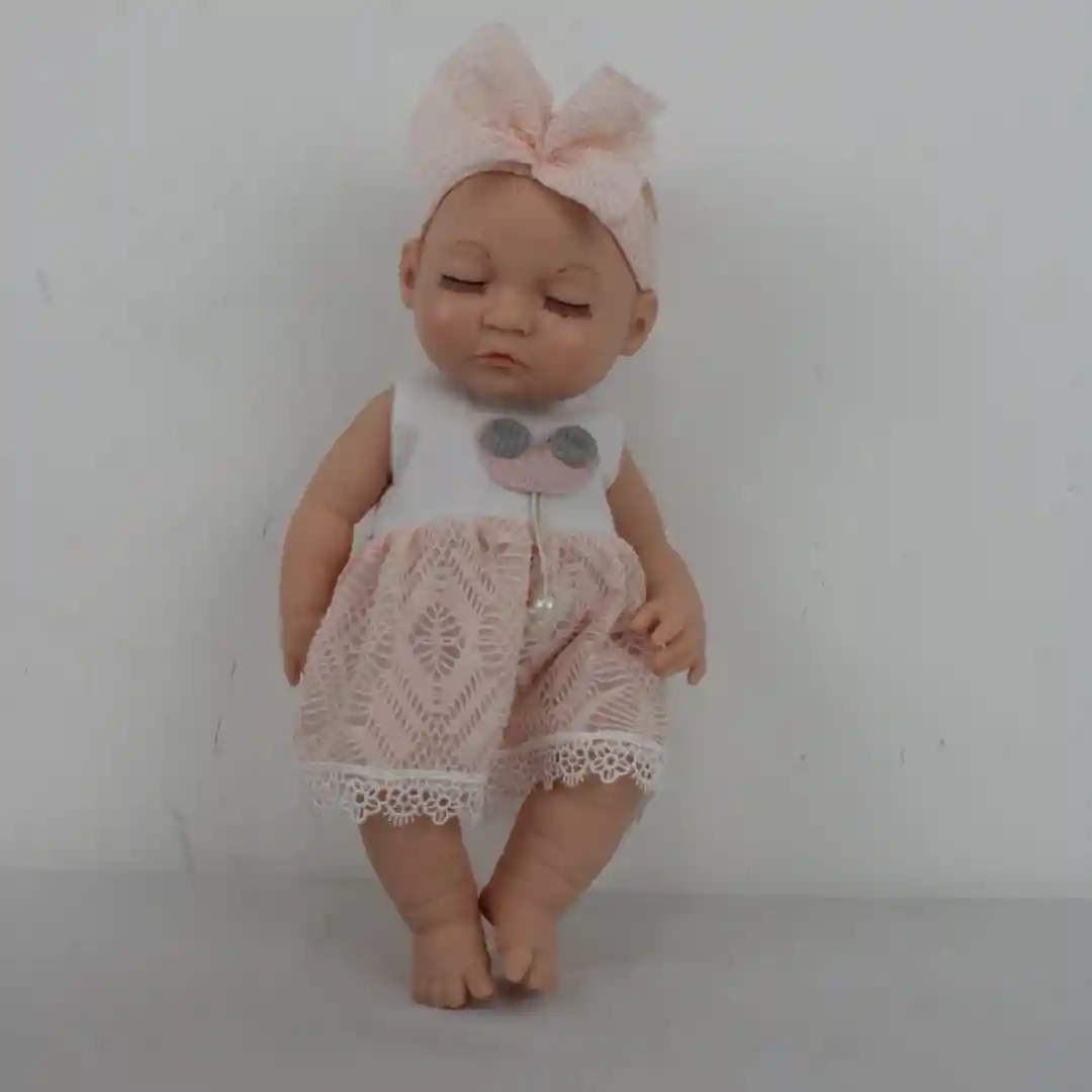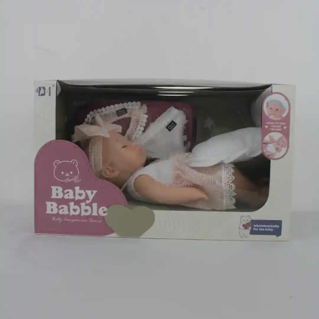 Muñeco bebé de cuerpo blando y cabeza, brazos y piernas de vinilo suave, con apariencia realista. Diseñado para juego de rol, estimulación afectiva y como artículo de alta rotación en el segmento de juguetes clásicos para primera infancia.