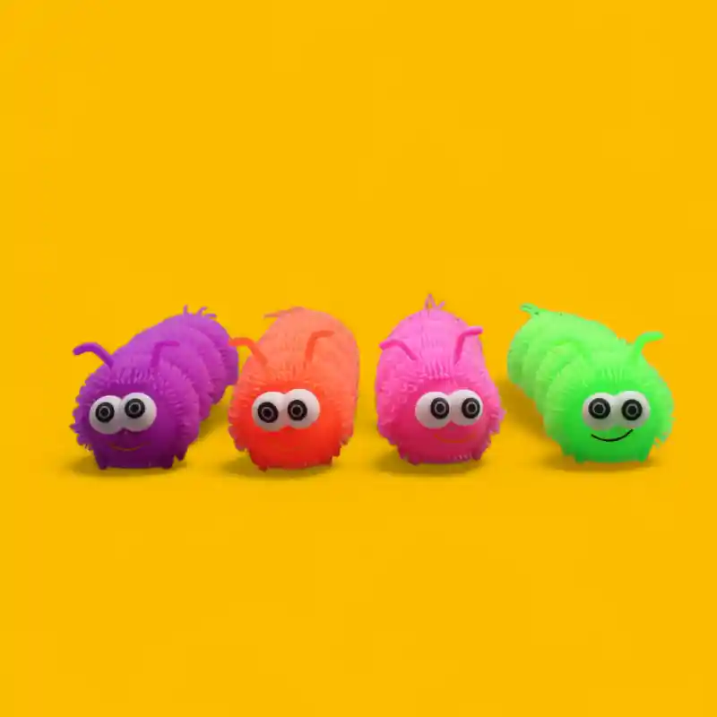 - Función Anti-Estrés: Al apretar y estirar las orugas, se libera tensión y se reduce el estrés. Son perfectas para tener en el escritorio, en la mochila o en cualquier lugar donde necesites un momento de relajación.