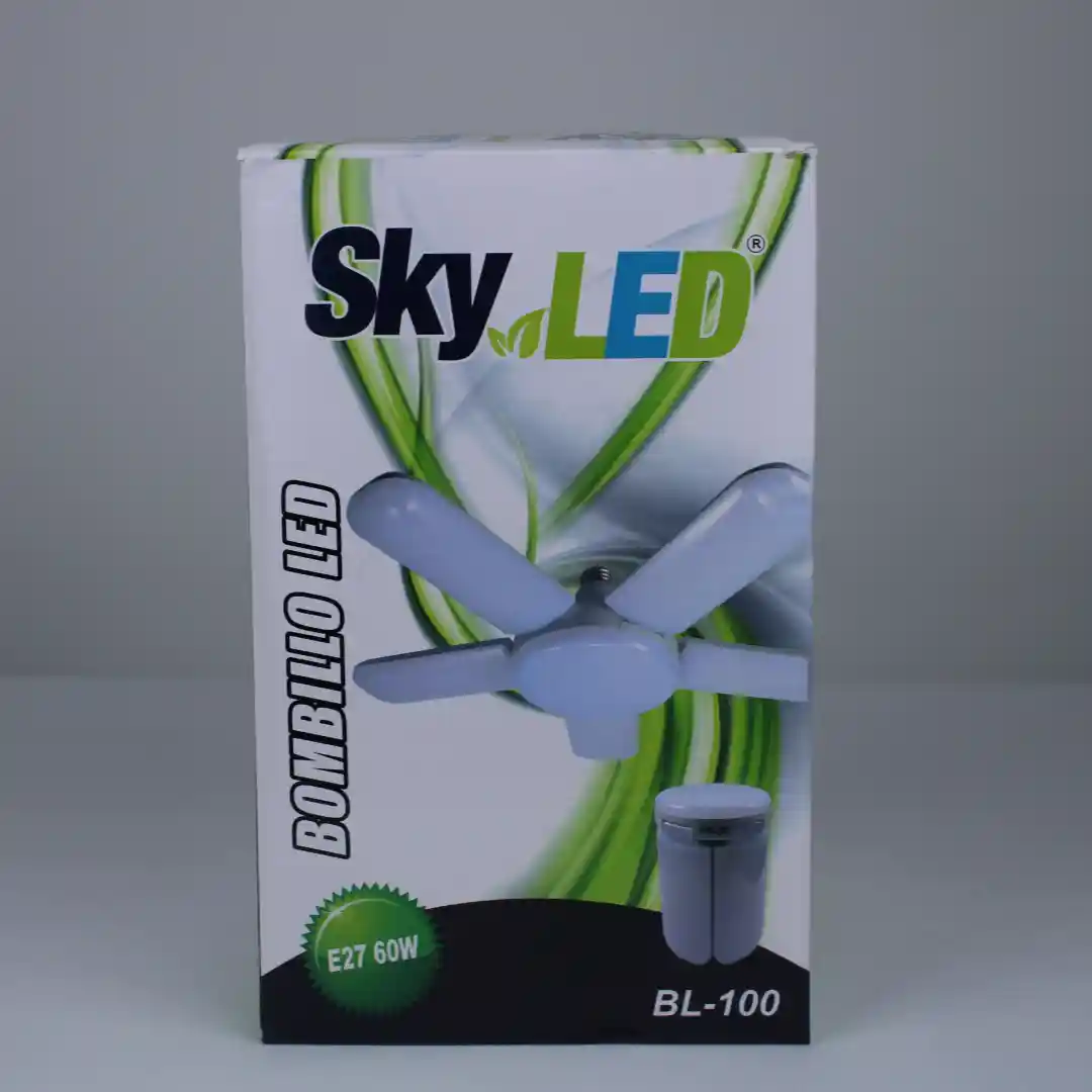 Este innovador bombillo LED de la reconocida marca Sky LED redefine la forma en que iluminas tus espacios. Con un diseño único de 5 hélices plegables, no solo ofrece una iluminación excepcionalmente brillante de 60W, sino que también se convierte en una pieza central moderna y atractiva para cualquier habitación. Su ingeniosa estructura asegura una distribución de la luz omnidireccional, alcanzando cada rincón con una claridad sorprendente.