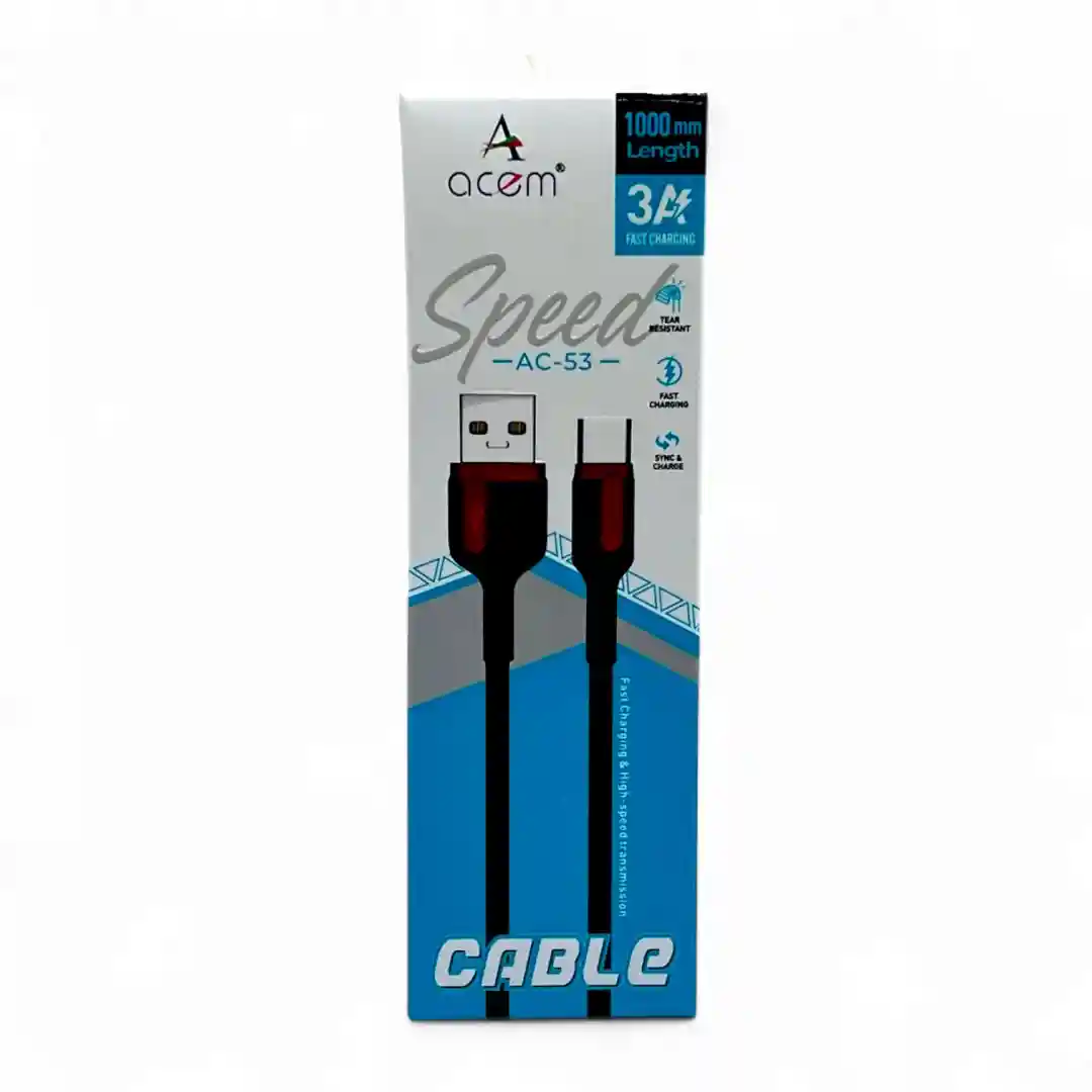El nombre lo dice todo. El CABLE ACEM SPEED AC-53 está diseñado para ofrecer una carga ultrarrápida a tus dispositivos compatibles con USB Tipo C. Gracias a su ingeniería avanzada, este cable soporta los protocolos de carga rápida más recientes, permitiendo que tu smartphone, tablet o incluso tu laptop recupere su energía en tiempo récord. Olvídate de las largas esperas y disfruta de más tiempo de uso con la tecnología ACEM SPEED.
