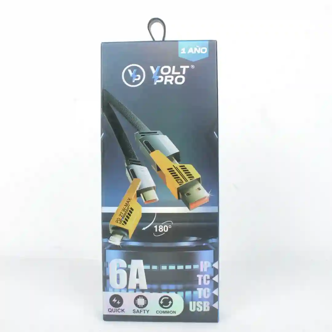 El cable Volt Pro VB-704 es una solución de conectividad premium diseñada para dispositivos con puerto Lightning (iPhone). Este cable combina la versatilidad de una conexión USB Tipo C con la durabilidad de un revestimiento acordonado de alta densidad. Su estructura reforzada previene enredos y protege los núcleos internos contra la flexión constante, garantizando una transferencia de energía y datos sumamente estable. Es el accesorio ideal para quienes buscan una carga rápida de alta fidelidad y una sincronización de archivos segura con un diseño estético y profesional.