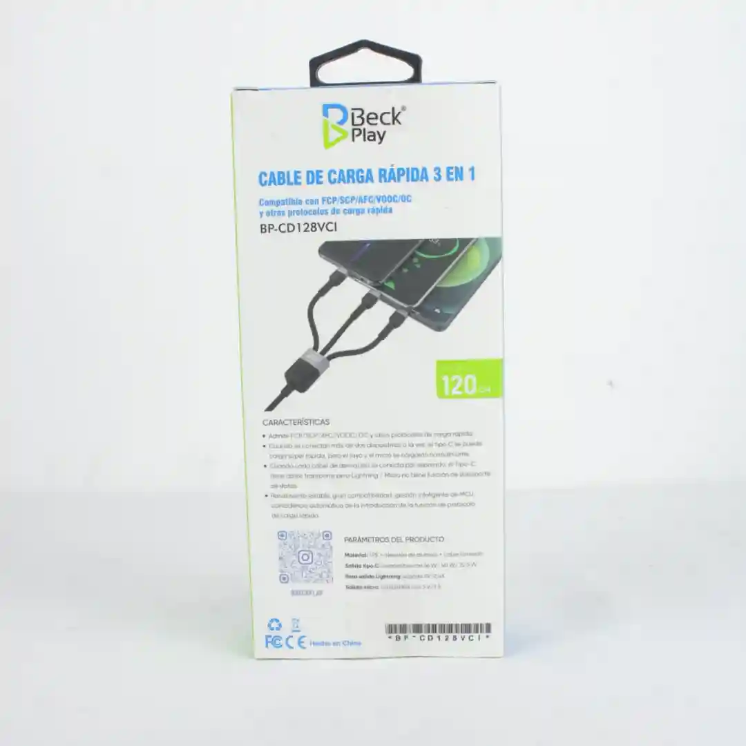 CABLE CARGA RÁPIDA 3 EN 1 BECK PLAY BP-CD128VCI