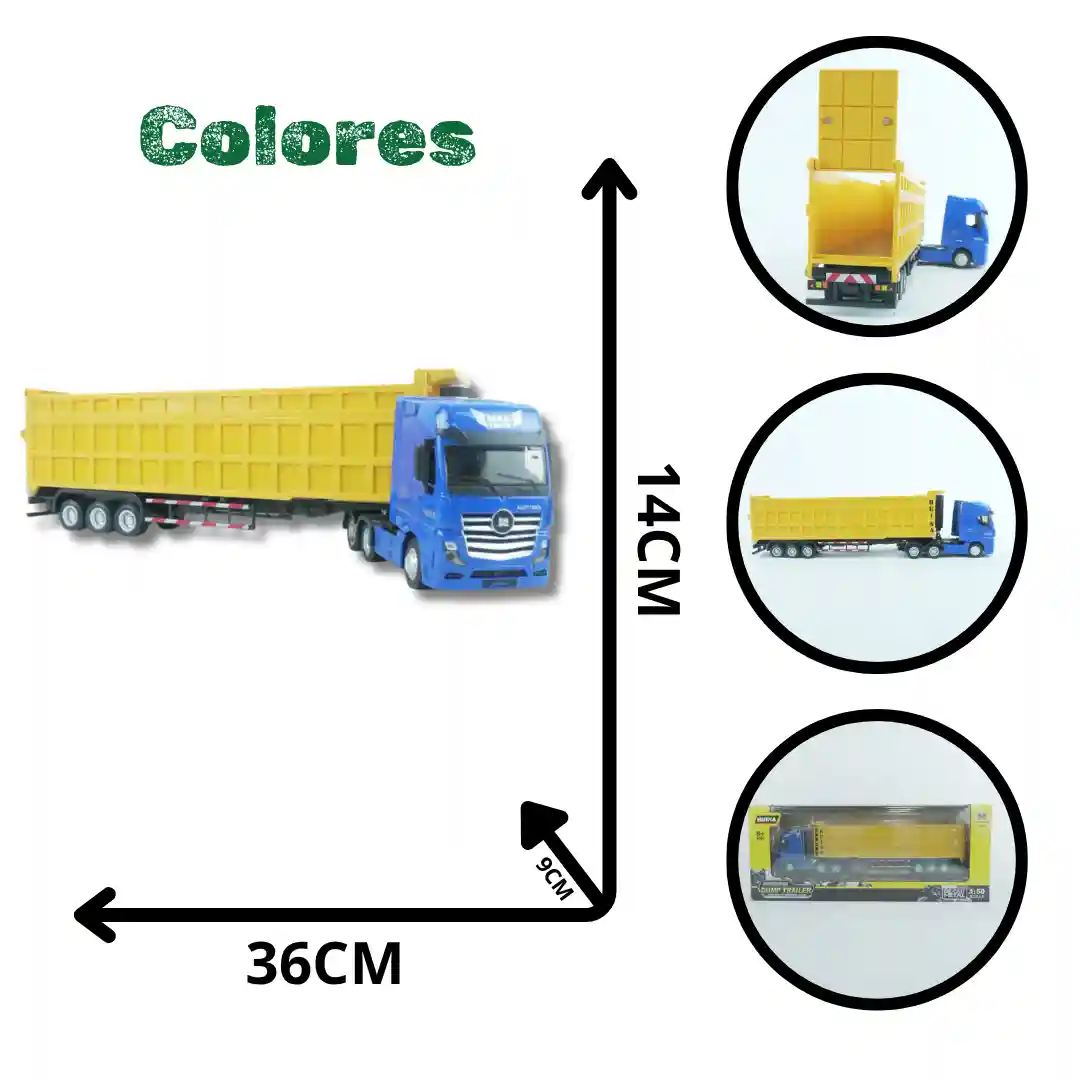 Este es un modelo que celebra la funcionalidad y la fuerza del transporte pesado. Si buscas un vehículo a escala con una construcción sólida y detalles que te permiten interactuar con él, no busques más. ¡Este camión está listo para ser el nuevo protagonista de tu colección o de la próxima aventura en el mundo de la construcción!