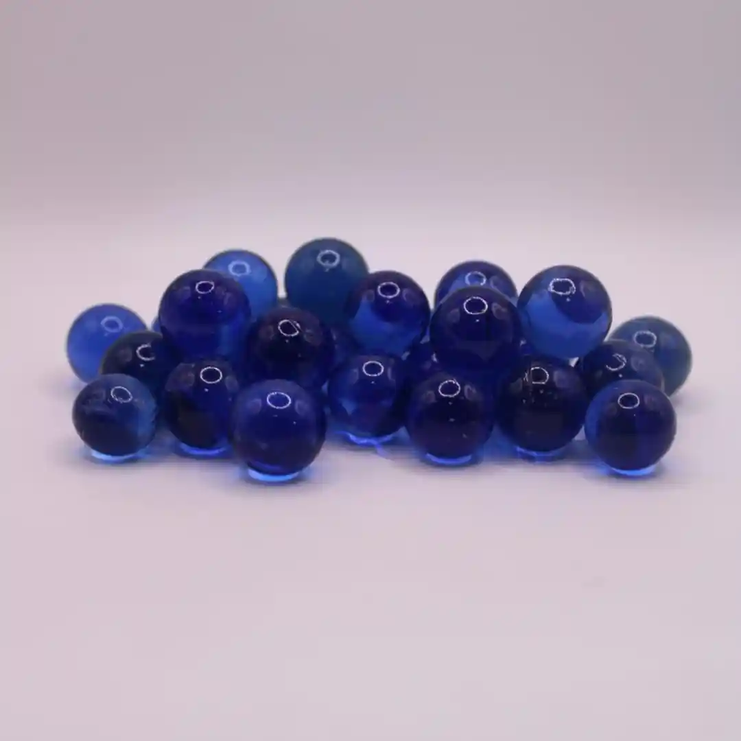 Estas canicas azules son más que simples objetos de vidrio; son pequeñas joyas que evocan la tranquilidad del agua y la inmensidad del cielo. Su color profundo y su brillo las convierten en un elemento decorativo y lúdico atemporal.