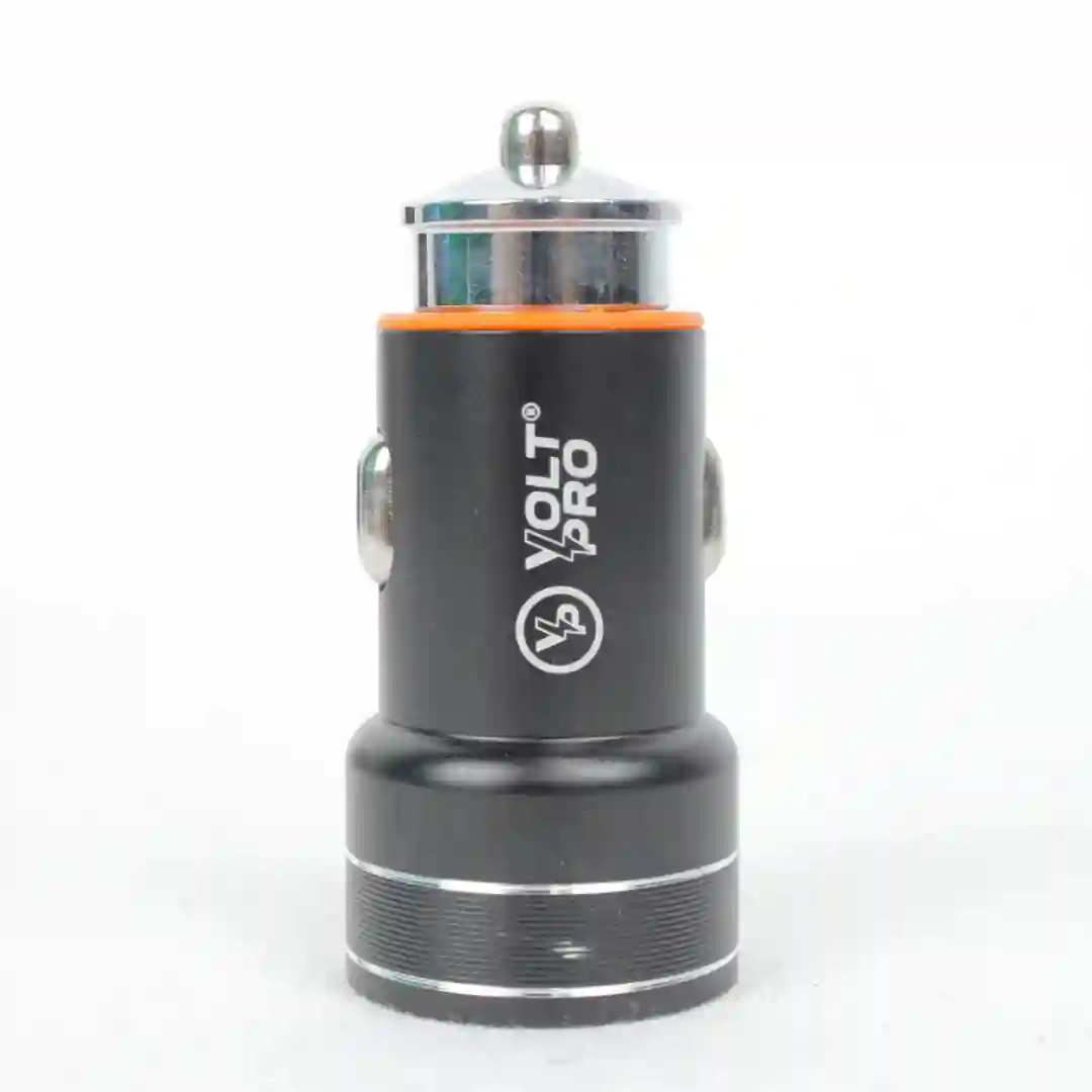 El cargador de carro Voltpro VP-CC02 es un adaptador de carga ultra rápido diseñado para conectarse al encendedor de cigarrillos del vehículo, proporcionando una fuente de energía estable y eficiente durante el trayecto. Este dispositivo destaca por su diseño compacto de doble puerto, que permite la carga simultánea de dos dispositivos móviles con una salida de alta potencia. Su estructura está fabricada con materiales resistentes al calor y cuenta con un acabado metálico elegante, garantizando seguridad y durabilidad en el uso diario dentro del automóvil.