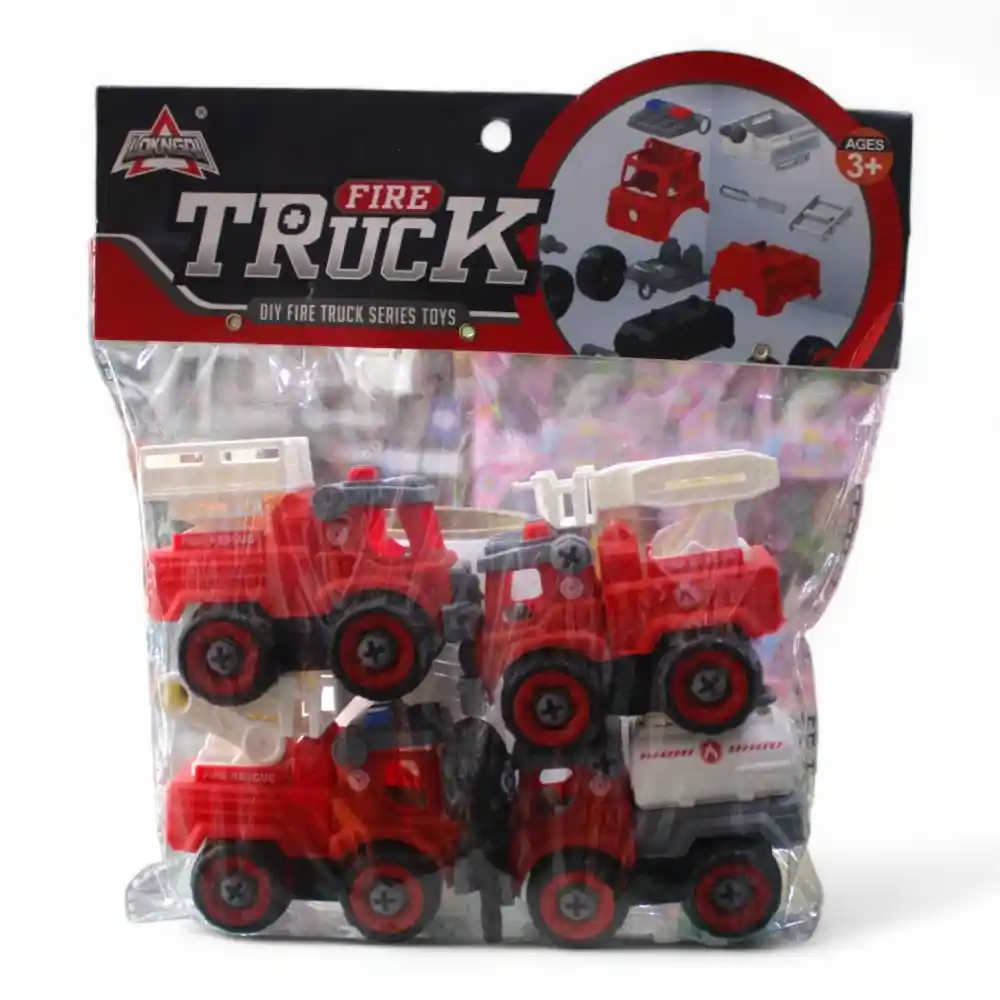 ¡Apaga incendios y rescata el día con el Set de 4 Camiones de Bomberos de Juguete en Bolsa LY018!