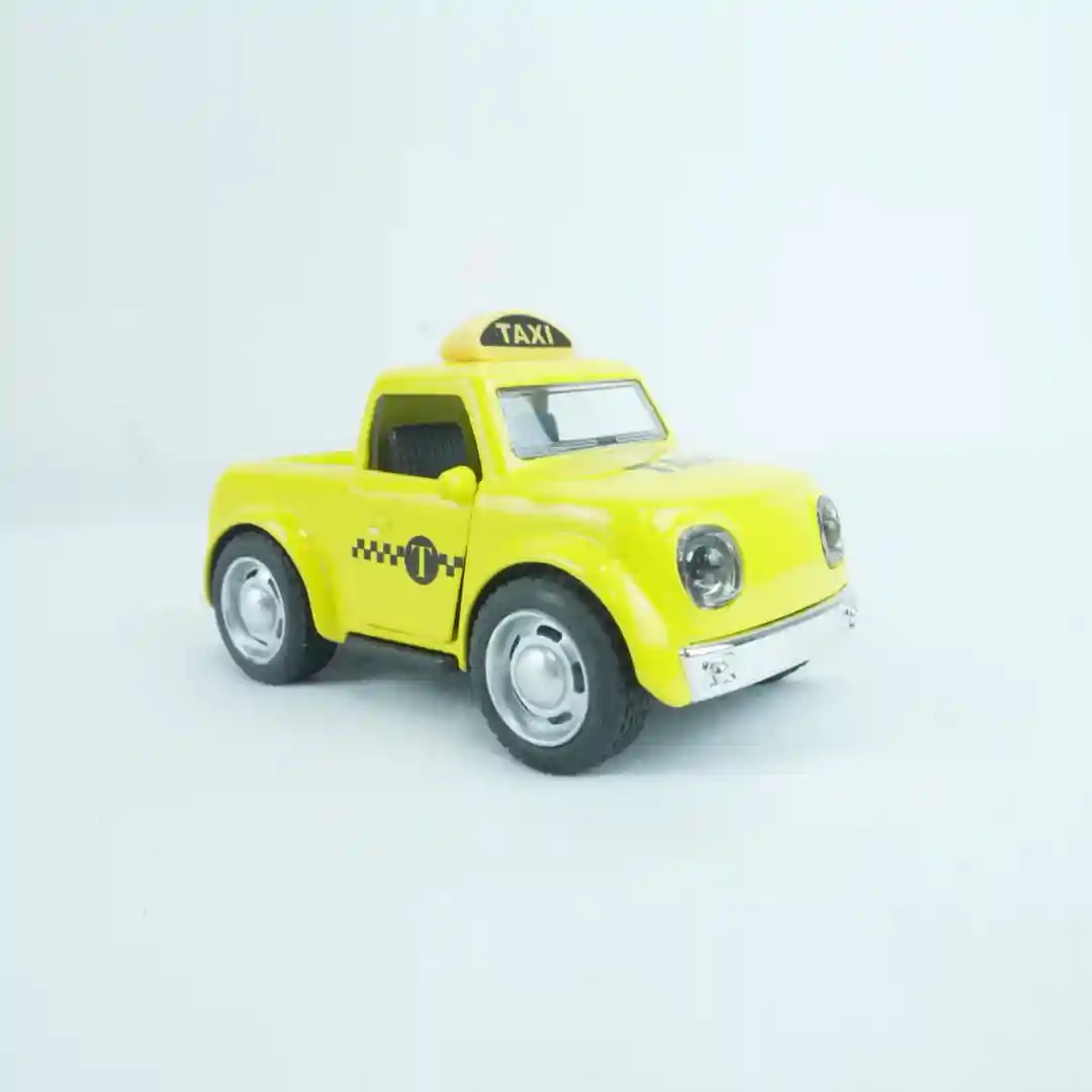 Color y Señalización de Taxi: El acabado está en el típico y llamativo color amarillo ocre, distintivo de los taxis urbanos, con detalles en negro en la base, las ruedas y la simulación de las ventanillas. El toque final lo da el rótulo superior que claramente identifica al vehículo como un taxi, añadiendo autenticidad.