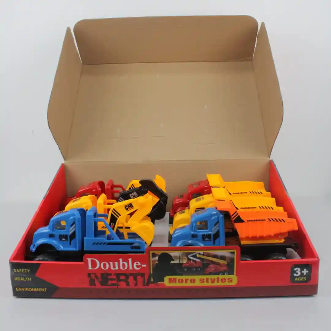 Descripción: Vehículo de juguete tipo retroexcavadora con funciones mecánicas y sistema de movimiento por fricción (Push & Go).