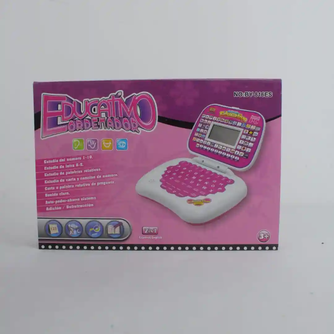 Descripción: Computador educativo de juguete con diseño ergonómico y más de 20 funciones de aprendizaje, que incluye teclado QWERTY y un ratón (mouse) funcional para simular una experiencia de uso real.