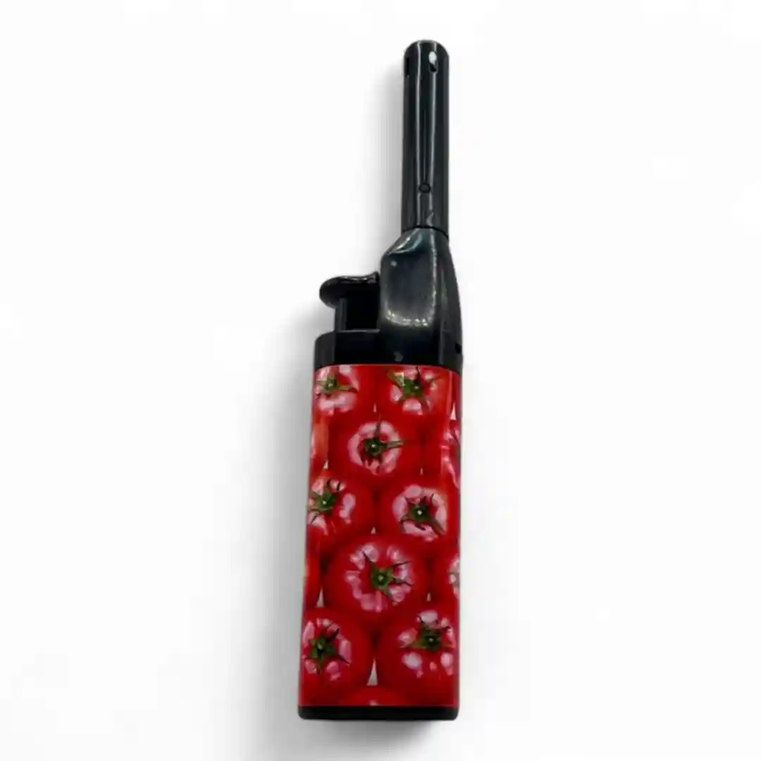 Diseño Exclusivo con Estampado de Tomates: Lo que realmente distingue a este encendedor es su llamativo patrón de tomates rojos, vibrantes y apetitosos. Este diseño lo hace perfecto para amantes de la cocina, jardinería o simplemente para quienes disfrutan de accesorios con un toque original y diferente en casa.