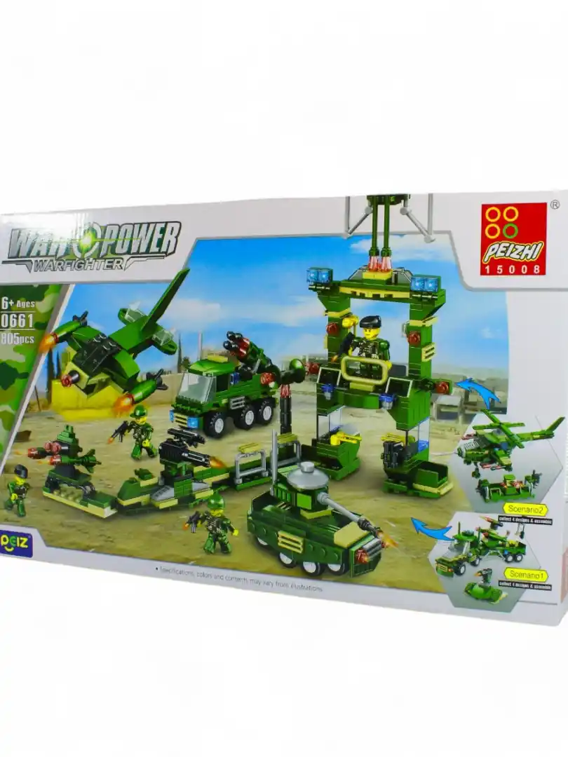Este set de construcción militar es el sueño de todo pequeño comandante. Con cientos de piezas, podrás construir una base militar completa, con vehículos blindados, helicópteros, tanques y soldados. ¡Prepárate para la acción!