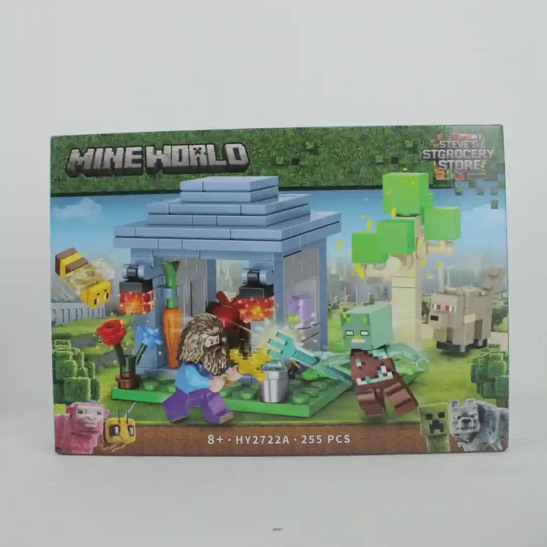 Steve’s Grocery Store: Este set tiene 255 piezas y presenta una construcción con un techo azul y paredes de cristal. Incluye una figura que parece ser Steve (con un look más de ermitaño o granjero), un Zombie y lo que parece ser un Zorro. ¡Una escena de comercio y defensa contra criaturas no muertas!
