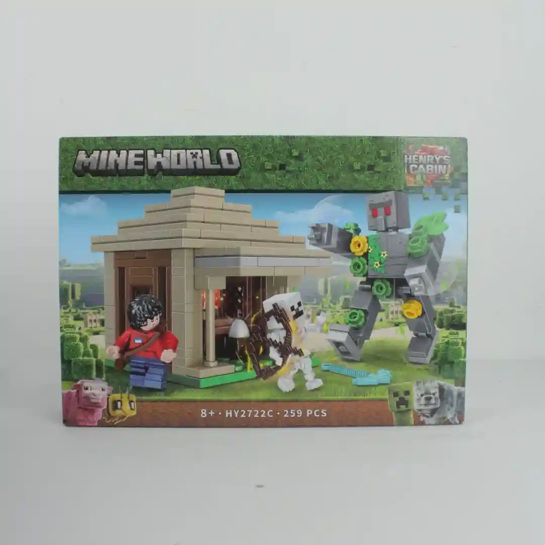 Henry’s Cabin: Este nos trae 259 piezas. Vemos una cabaña con techo de paja, una minifigura masculina, un esqueleto con arco y un Golem de Piedra que parece estar custodiando el lugar. ¡Perfecto para recrear una épica batalla en el bosque!