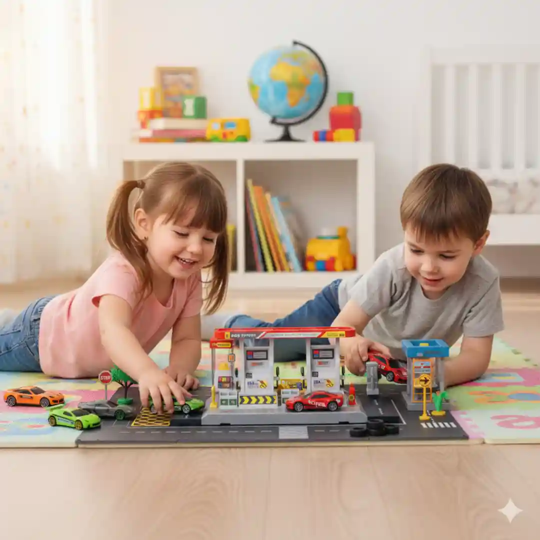 Presentamos la Estación de Gas y Pista de Carros Metálicos Street Convoy MH-601, un set de juego interactivo que combina la diversión de una estación de servicio con la emoción de los vehículos de metal. Este producto incluye una estación de servicio que se puede armar y 4 vehículos metálicos. La referencia MH-601 se distribuye en cajas master, optimizando el inventario para la venta al por mayor.