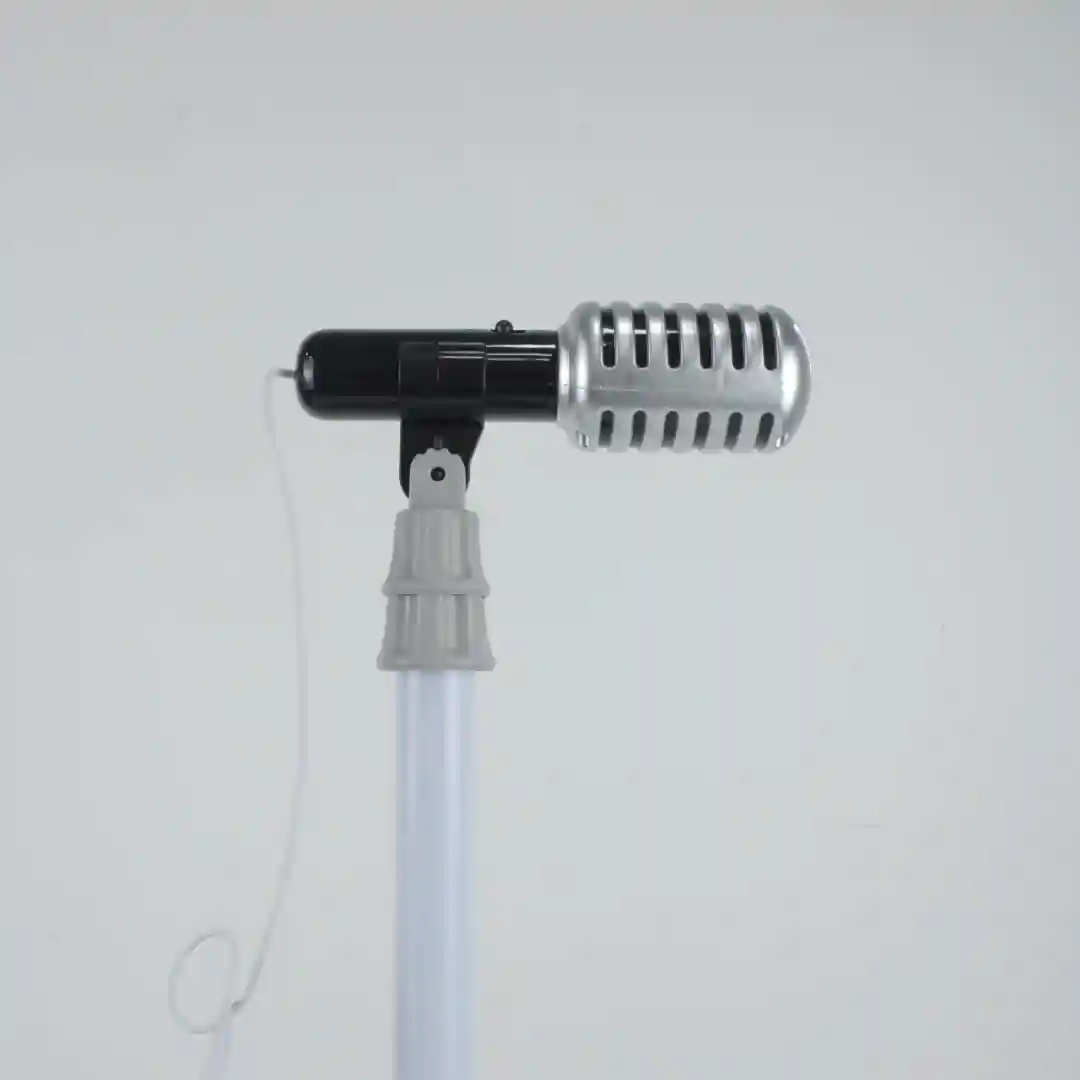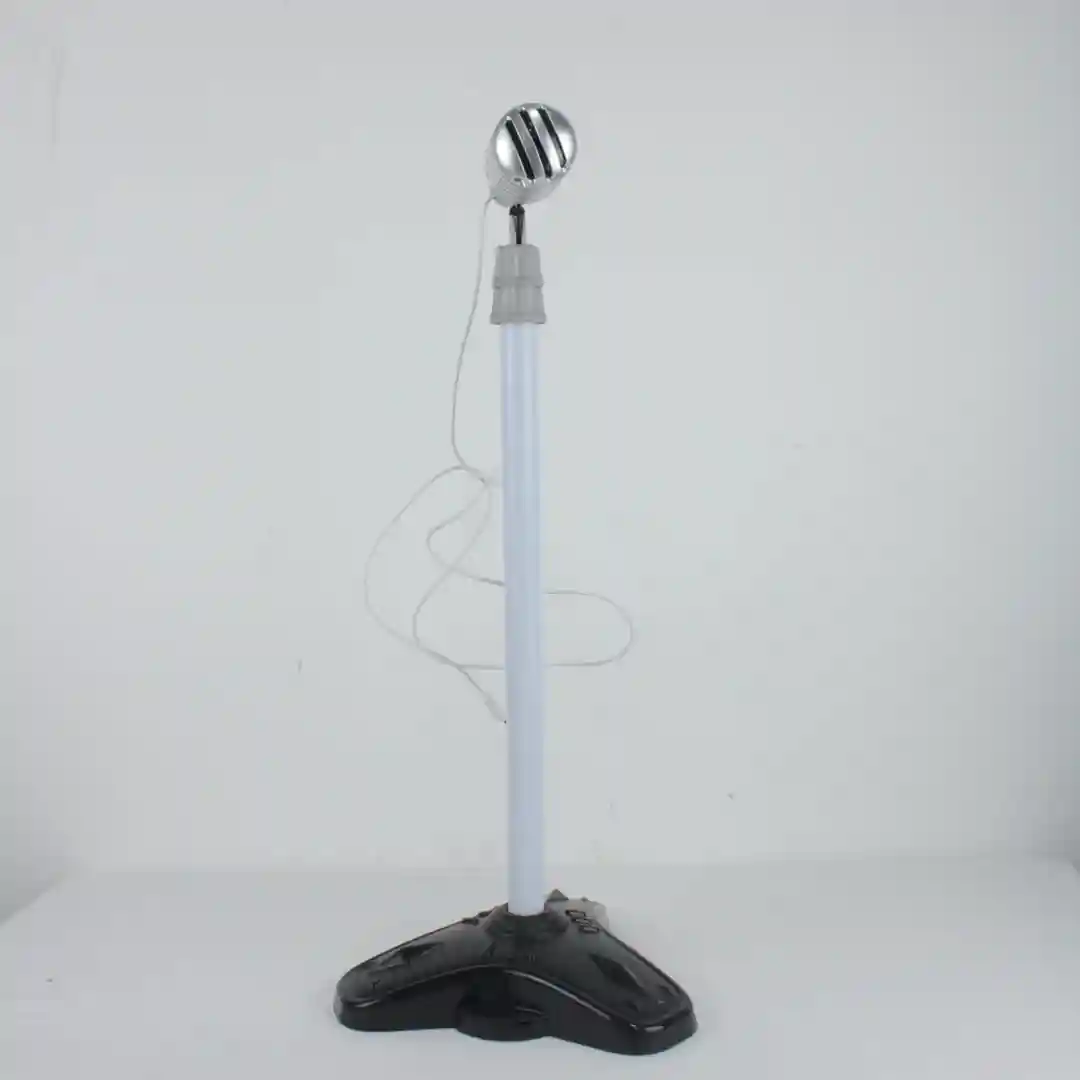 Micrófono con Soporte: Micrófono alámbrico con soporte ajustable para juego de escenario.