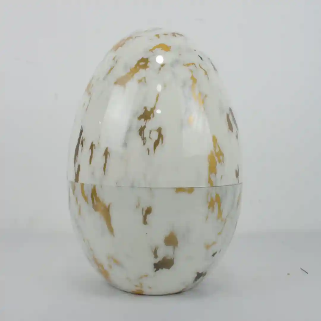 Material del Contenedor: Estuche de almacenamiento con forma de huevo, acabado premium tipo mármol blanco con vetas doradas.