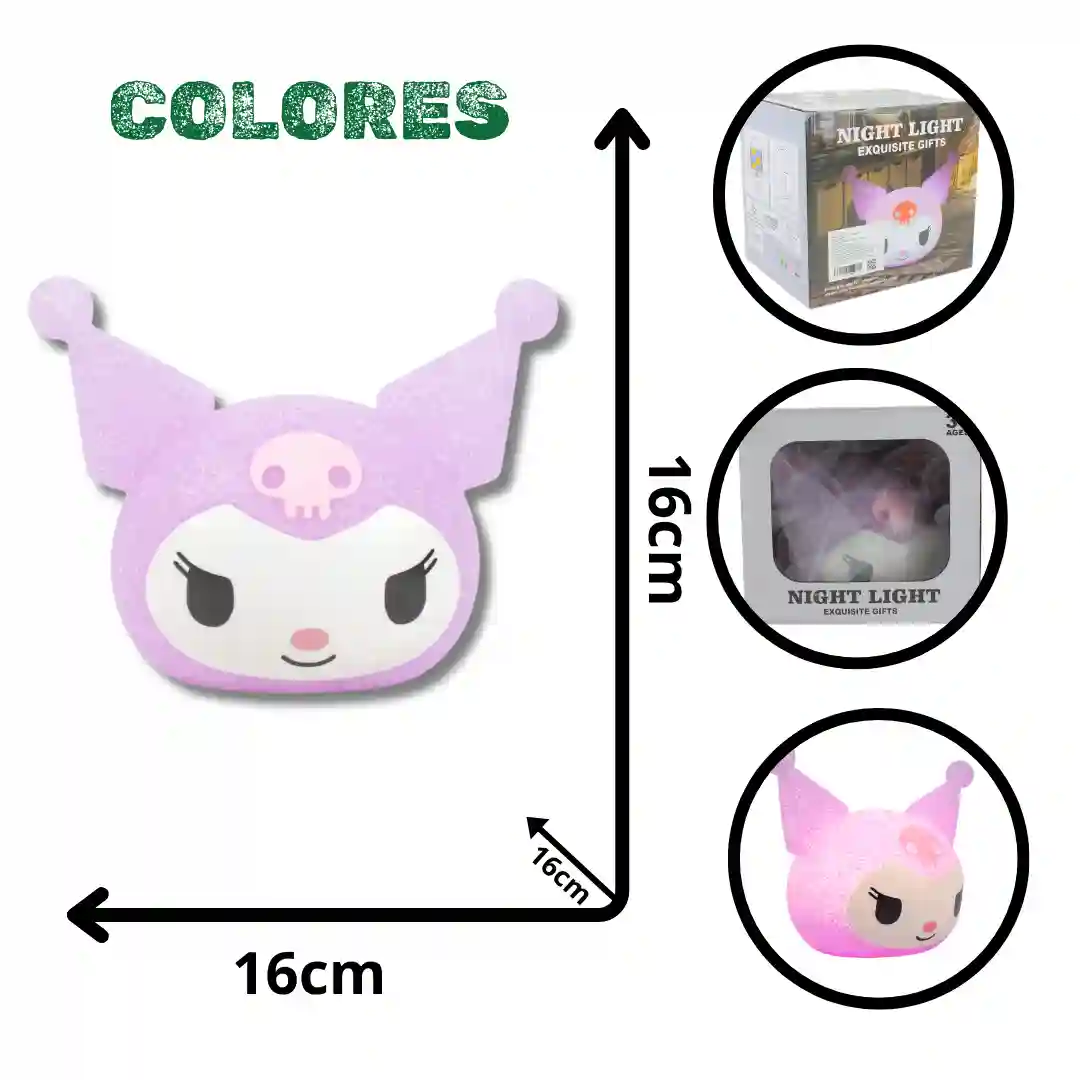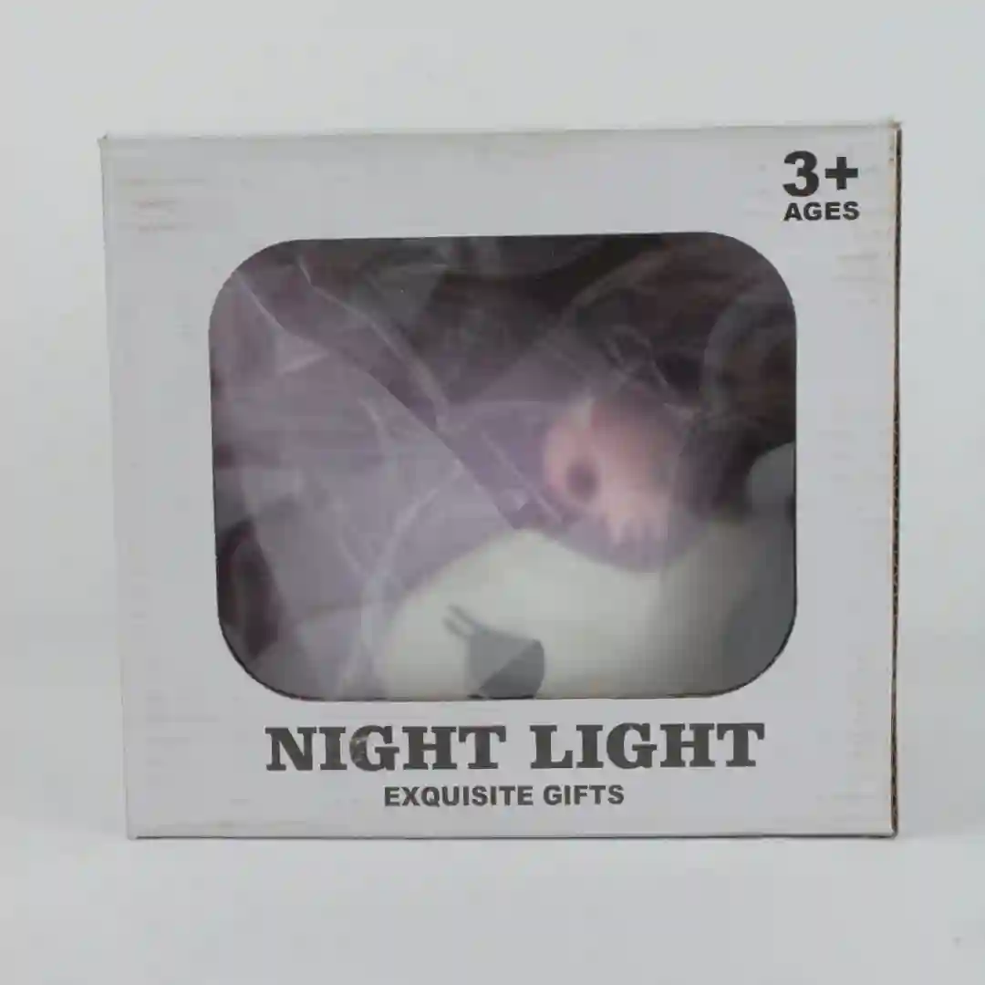 Luz nocturna (Night Light) diseñada como un regalo exquisito (Exquisite Gifts), ideal para ambientar y decorar habitaciones con un toque tierno y moderno. Esta lámpara de personaje presenta una superficie con textura granulada en tono lila que permite una difusión de luz suave y acogedora. Es un accesorio funcional que ofrece múltiples opciones de energía, adaptándose perfectamente a mesas de noche o escritorios.