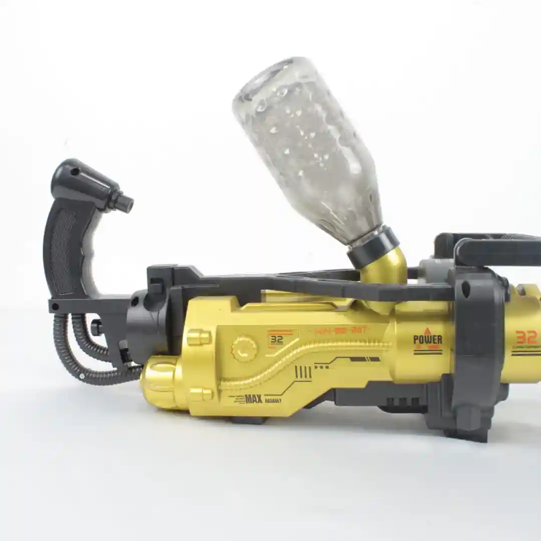Este juguete de acción y simulación es un artículo de gran tendencia y alta demanda en el mercado juvenil, ideal para el juego al aire libre, y se distingue por su innovador sistema de doble alimentación que potencia la experiencia de juego.