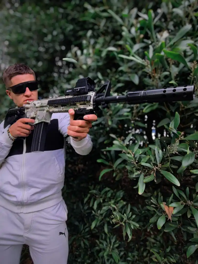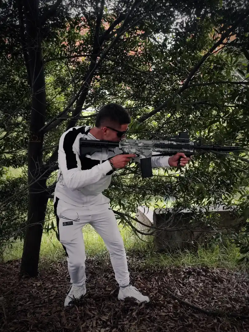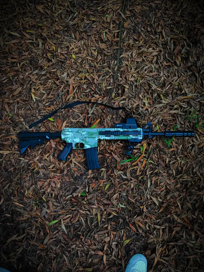 - Diseño Realista: Inspirado en el modelo M4, este rifle presenta un acabado detallado y un diseño camuflado que simula el equipo militar real, ideal para partidas de airsoft en entornos exteriores.