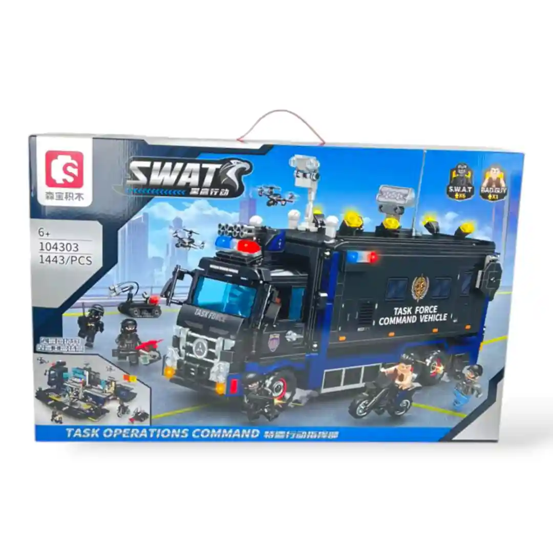 ¡La ley y el orden llegan a tu ciudad con el impresionante LEGO POLICÍA 104303 FOX-1331 de SEMBO BLOCK! Este set «SWAT Task Force Command Vehicle» te permite construir un gigantesco centro de comando móvil, lleno de detalles y funcionalidades, ideal para las misiones policiales más complejas y emocionantes.