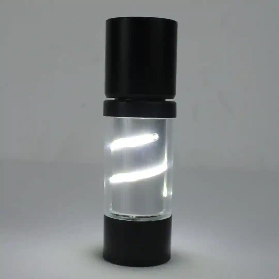 Unidad de iluminación portátil con cuerpo de aleación de aluminio, sistema de zoom mecánico y batería recargable integrada.
