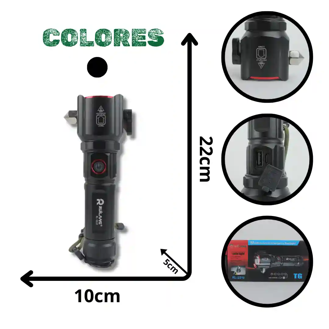 Dimensiones de la Linterna: 10 cm x 22 cm x 5cm.