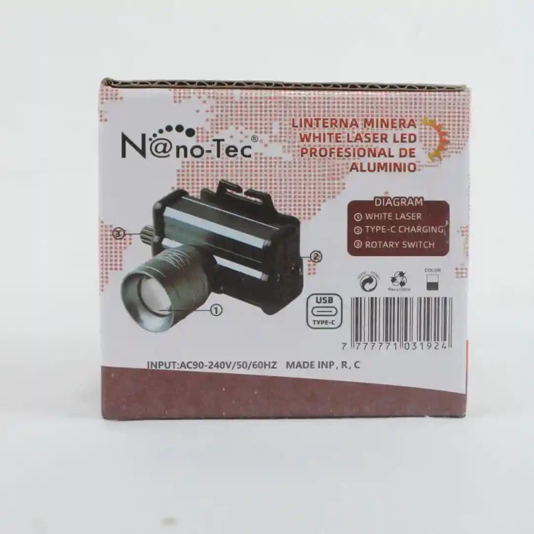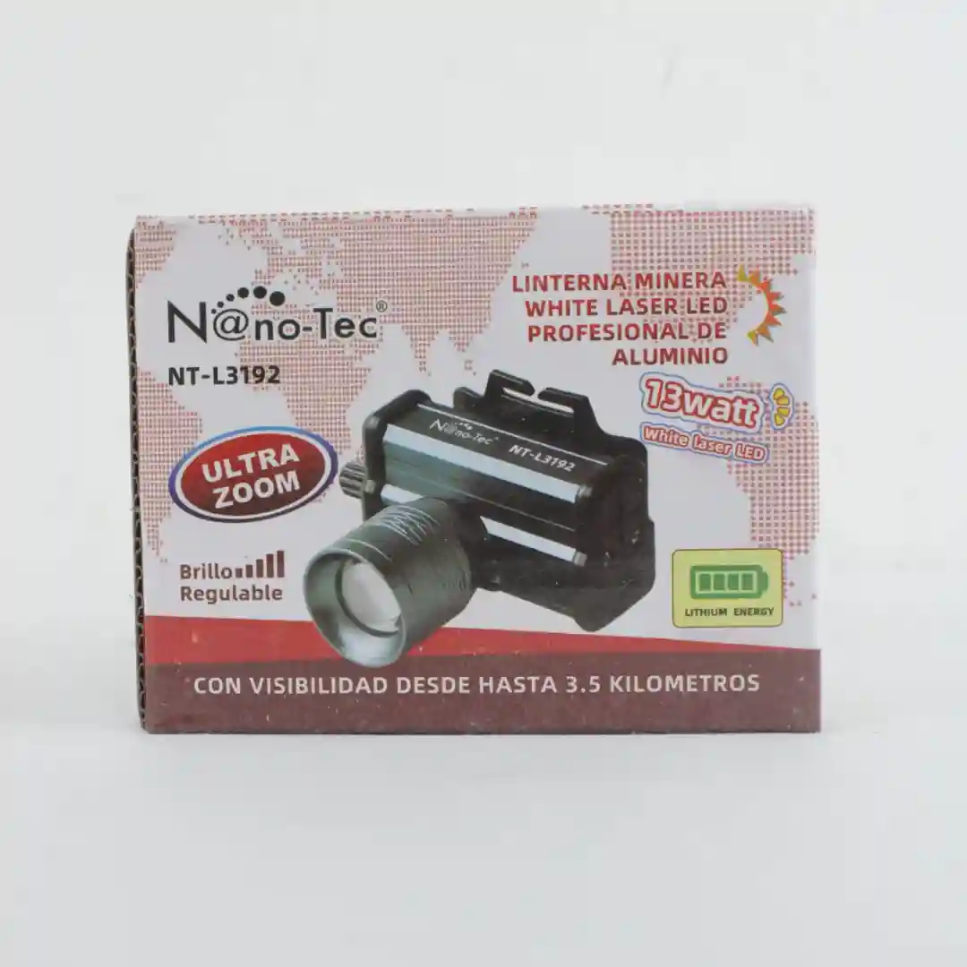 Este modelo es una linterna minera profesional de aluminio, destacada por su tecnología White Laser LED, zoom y gran alcance. Es un producto de alto valor y rendimiento, ideal para su distribución en el segmento profesional, de seguridad, y actividades de largo alcance.