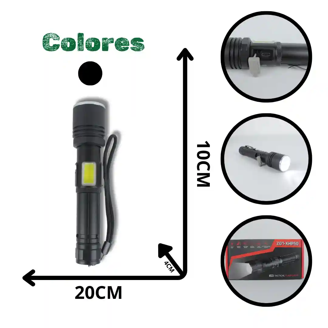 Dimensiones Aproximadas: Linterna compacta y robusta (aproximadamente 16 cm de largo x 4 cm de diámetro de cabeza).