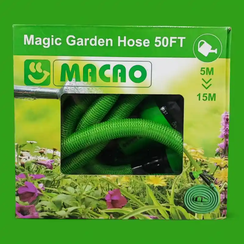 Transforma la tarea de regar tu jardín con la Manguera de Jardín Extensible Macao 50FT MC-15M. Esta manguera innovadora se expande hasta 15 metros (50 pies) cuando el agua fluye a través de ella y se contrae a un tamaño compacto para un fácil almacenamiento cuando no está en uso. ¡Olvídate de las mangueras pesadas, voluminosas y propensas a enredarse!