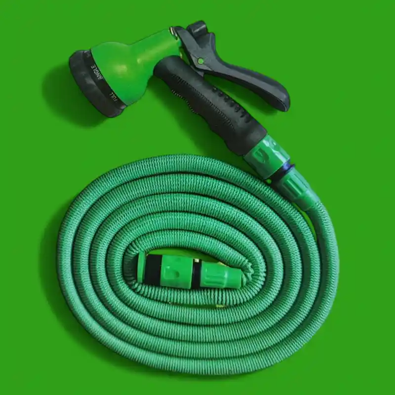 - Diseño Compacto y Ligero: Cuando el agua se cierra, la manguera se contrae a un tamaño pequeño y manejable, lo que facilita su almacenamiento y transporte. Ocupa mucho menos espacio que las mangueras tradicionales.