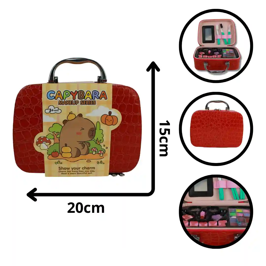 Maletín de maquillaje con diseño de Capybara, ideal para niños a partir de 3 años. Este set completo ofrece una selección de productos de maquillaje seguros y accesorios, presentados en un elegante estuche compacto y fácil de transportar. Su diseño atractivo y sus componentes de calidad lo convierten en un producto de alta demanda en el mercado infantil.