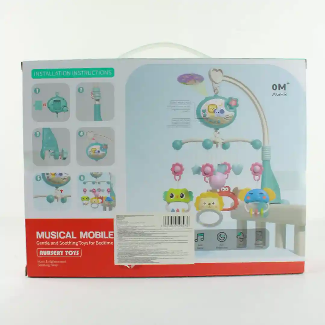 Presentación y empaque: Cada móvil viene en una caja de cartón individual, con un diseño que destaca las características clave del producto, como el proyector y el control remoto, haciéndolo ideal para la exhibición en tiendas de artículos para bebés.