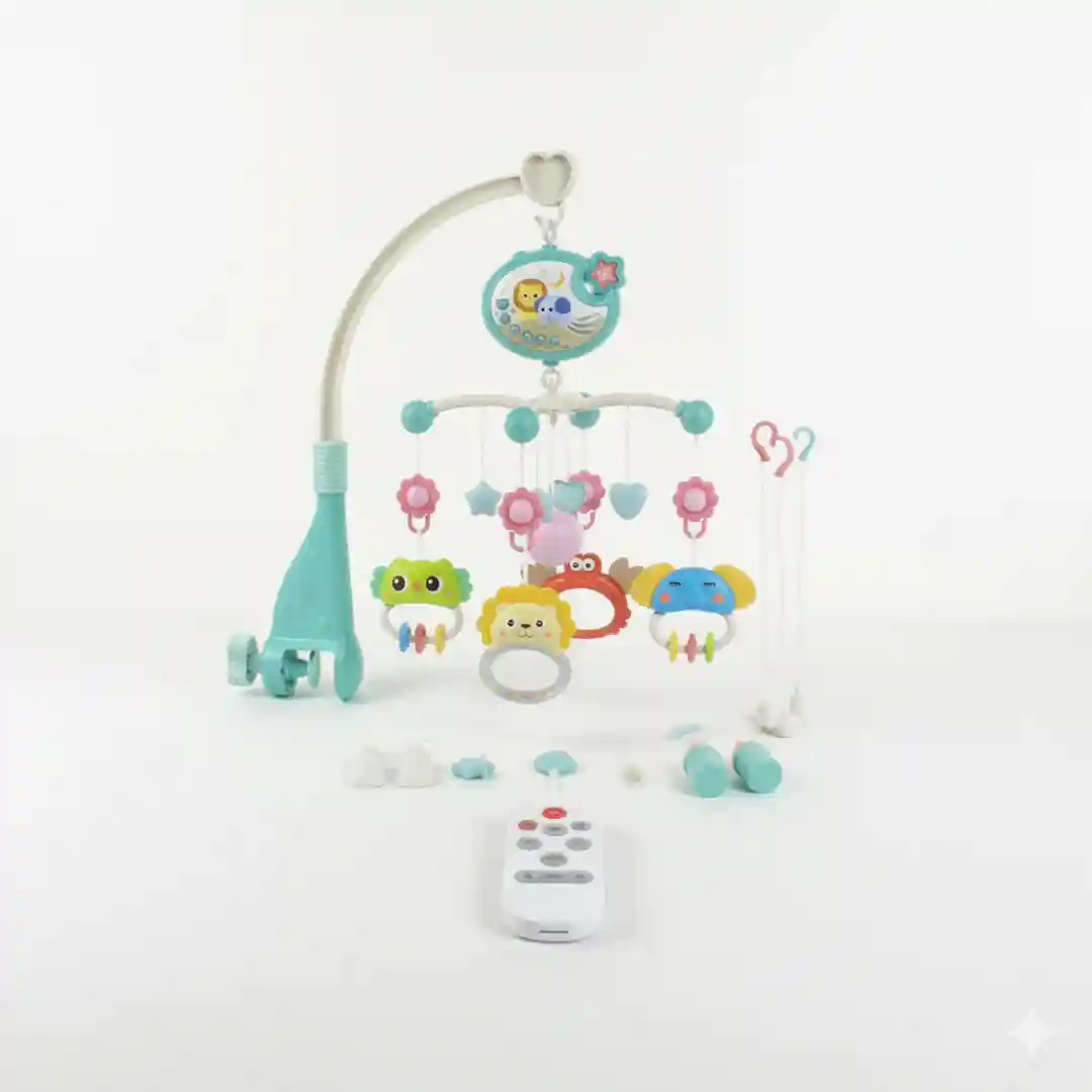 Ofrecemos el Móvil Musical con Proyector para Cuna, Referencia 698-84, un juguete interactivo diseñado para calmar y entretener a los bebés. Este producto combina un móvil de cuna giratorio con un proyector de luz, melodías y un control remoto, proporcionando múltiples funciones en un solo producto. La referencia 698-84 se distribuye en cajas master de 36 unidades, optimizando el inventario para la venta al por mayor.