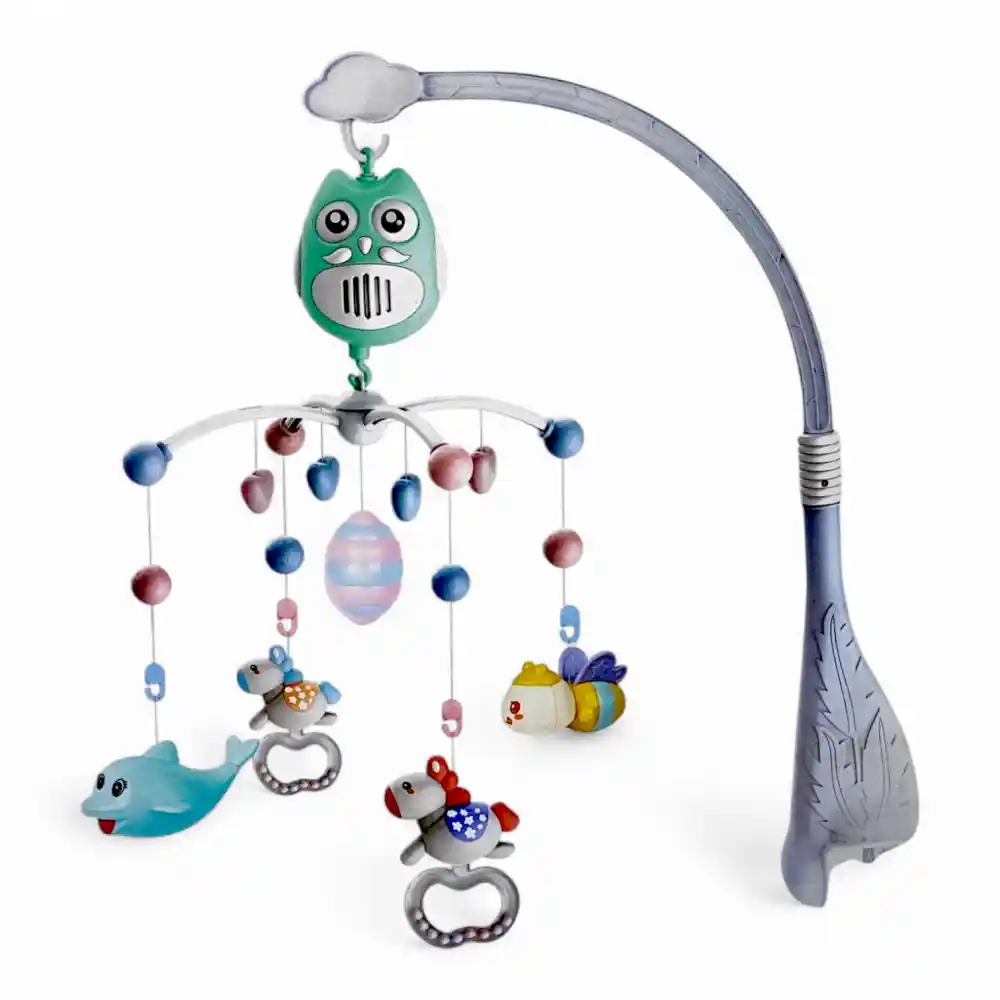 - Rotación Suave: El móvil gira suavemente, captando la atención del bebé y estimulando su seguimiento visual.