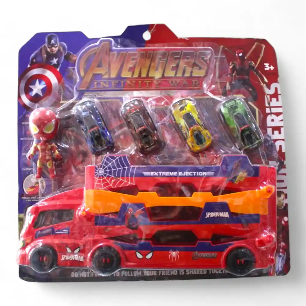 - Diseño temático de Avengers: La mula de transporte está decorada con gráficos de Spider-Man y otros héroes de Marvel, recreando la esencia de la película. Su color rojo vibrante y detalles heroicos la convierten en un juguete visualmente impactante.