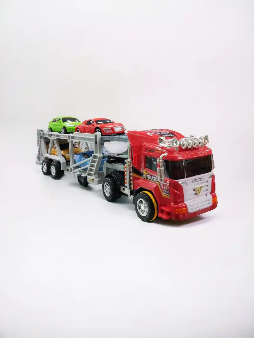 Este increíble camión transportador es el juguete perfecto para los pequeños amantes de los autos y los vehículos. Con su diseño realista y sus múltiples funciones, la diversión está asegurada.