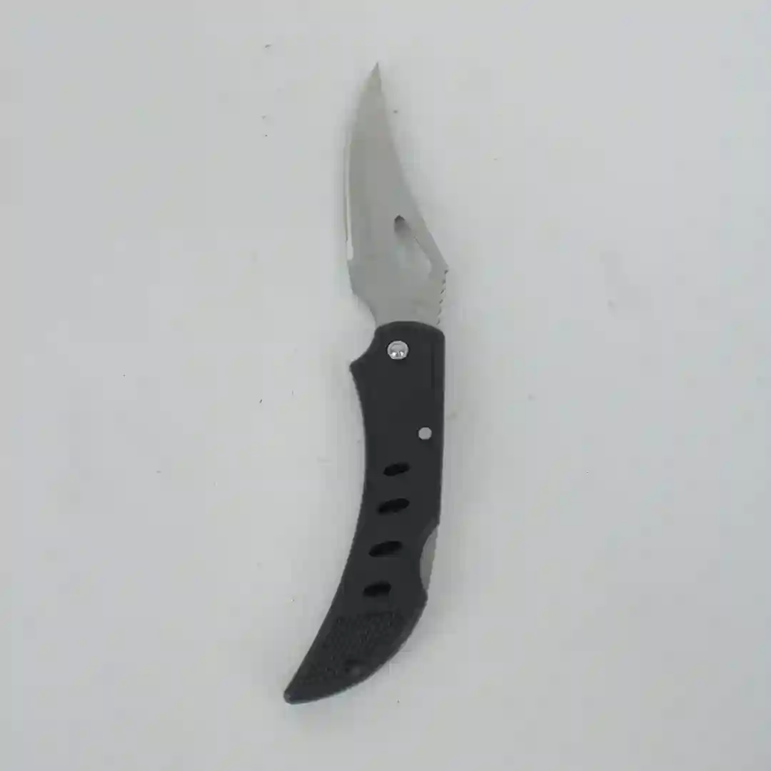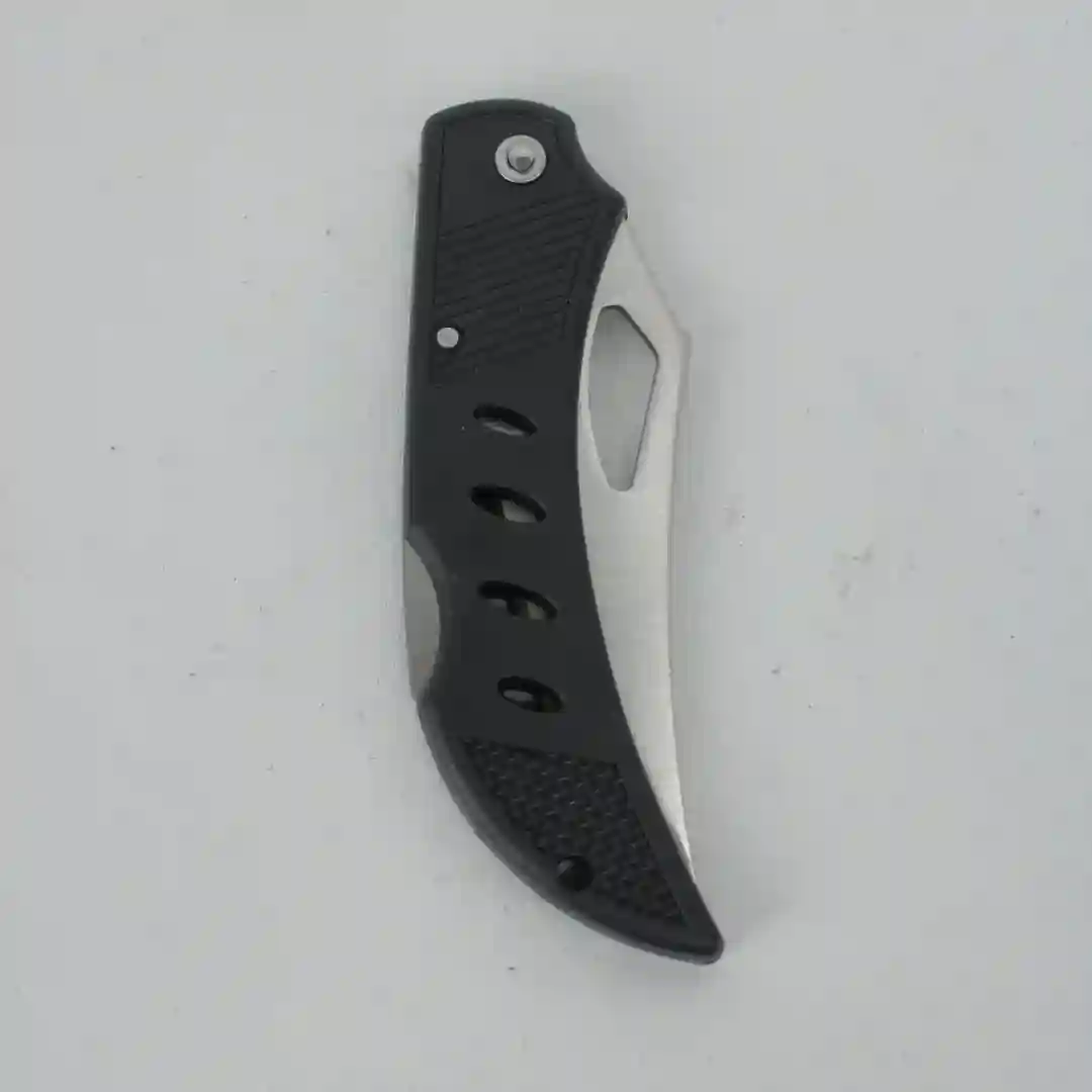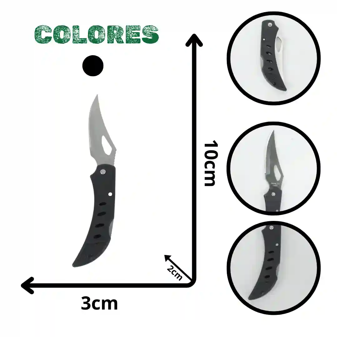 Navaja plegable de diseño táctico y deportivo, diseñada para ofrecer versatilidad en actividades de supervivencia y uso diario. Cuenta con una estructura robusta en color negro mate y un mango ergonómico que facilita un agarre firme en diversas condiciones. Su diseño aerodinámico y funcional la convierte en una herramienta esencial para el equipo de aventura.