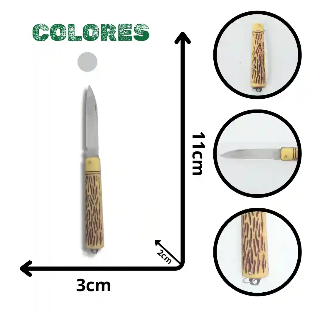 Navaja táctica de diseño ergonómico y compacto, ideal para actividades de supervivencia y uso diario. Cuenta con una estructura robusta que combina un mango texturizado para un agarre seguro y una hoja de acero resistente, presentada en un empaque temático que resalta su calidad profesional.