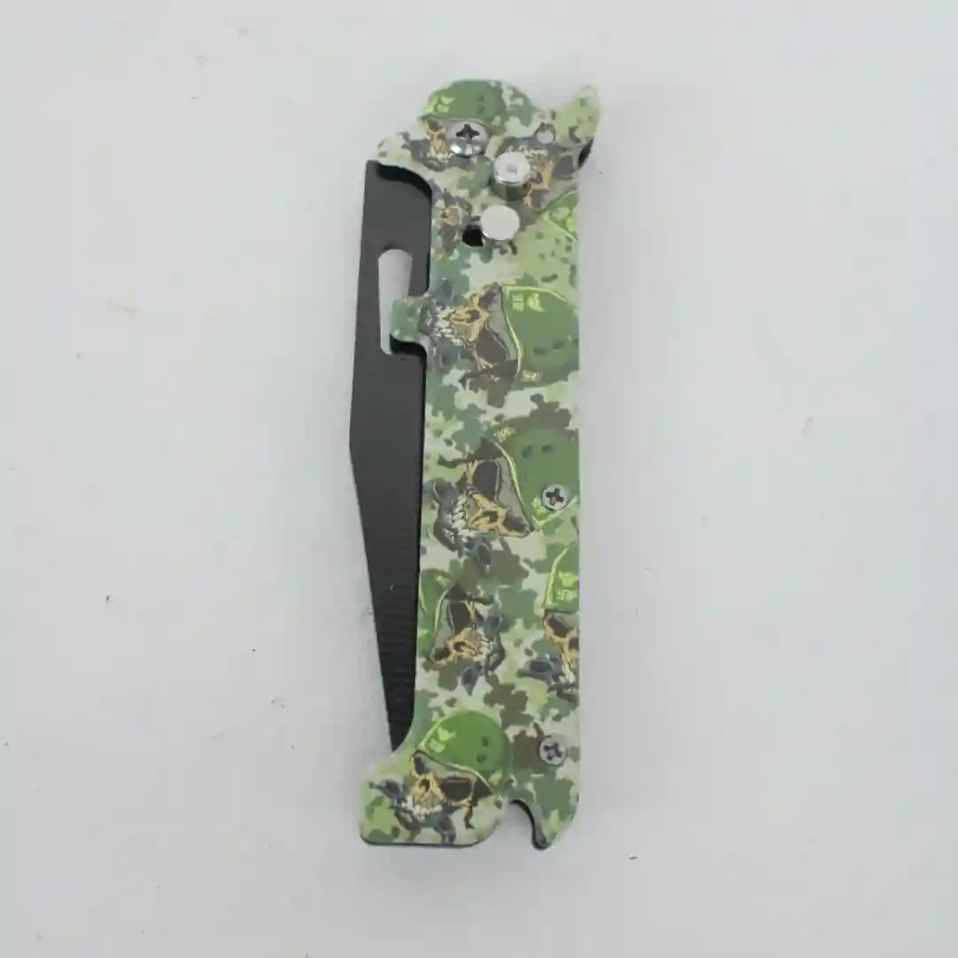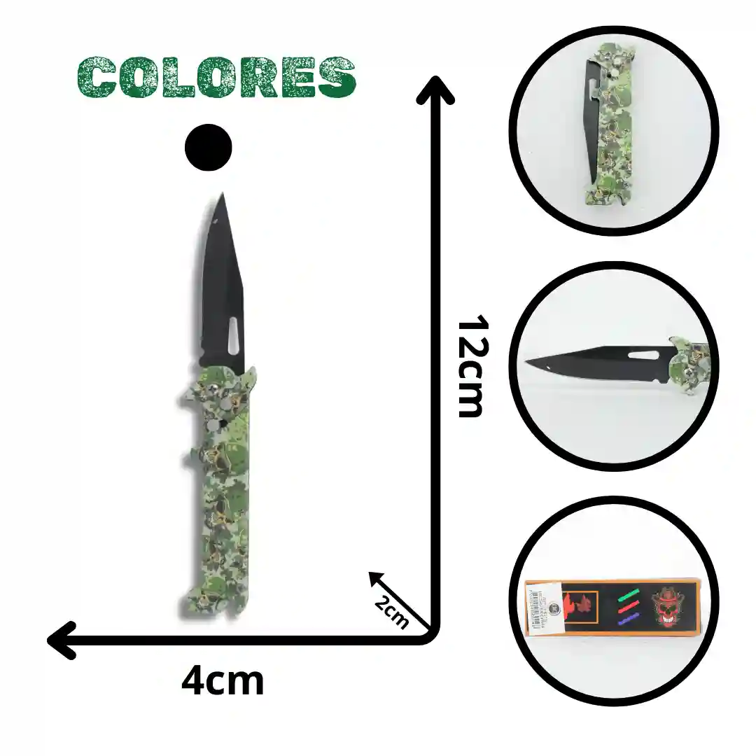 Navaja plegable de alto rendimiento con diseño ergonómico, fabricada para ofrecer durabilidad y precisión en diversas condiciones. Su estructura integra un mango de polímero negro con texturas de alta tracción y una hoja de acero con acabado oscuro para reducir el reflejo, ideal para uso táctico y de supervivencia.