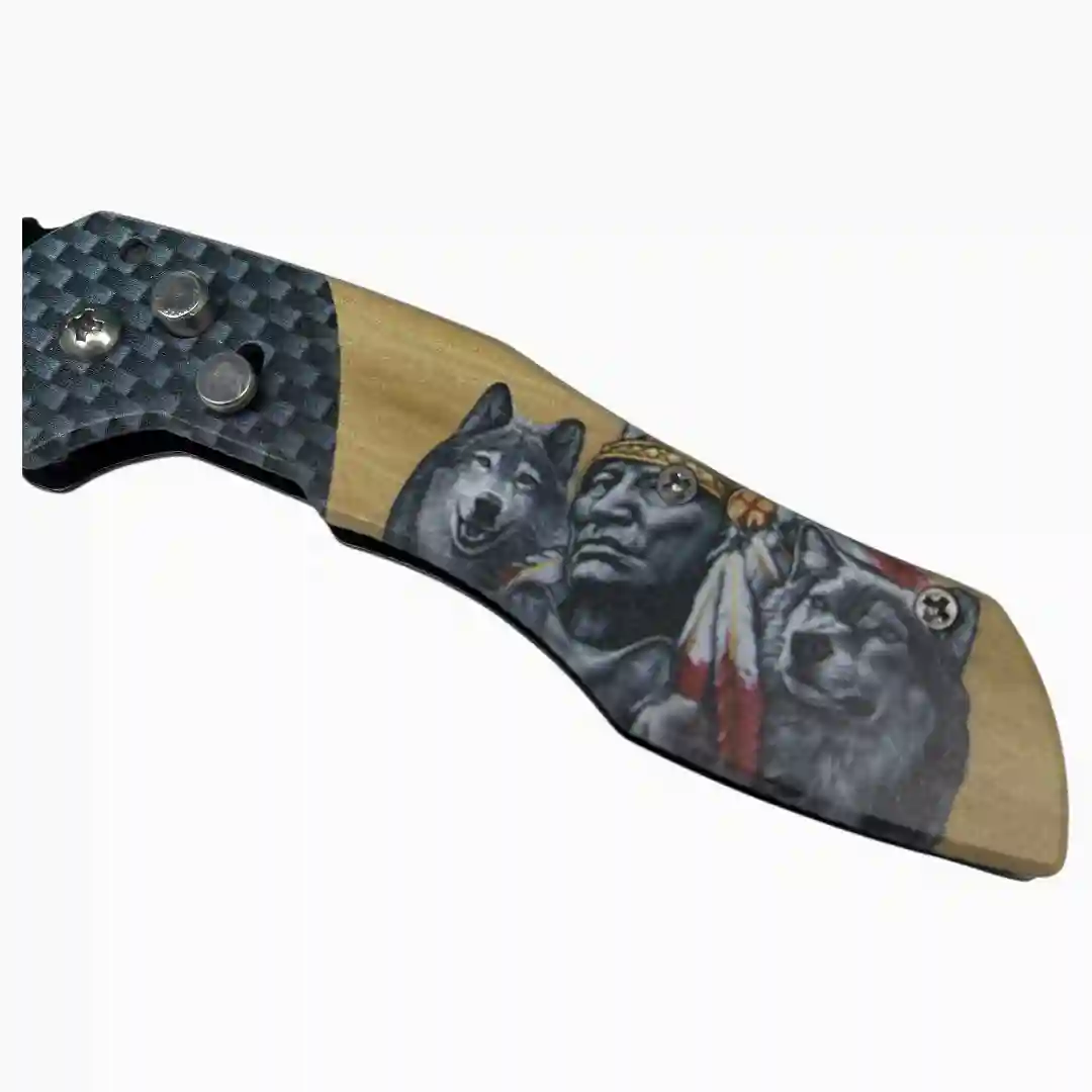 Lomo de la hoja con acabado dentado para un apoyo firme del pulgar durante el uso.