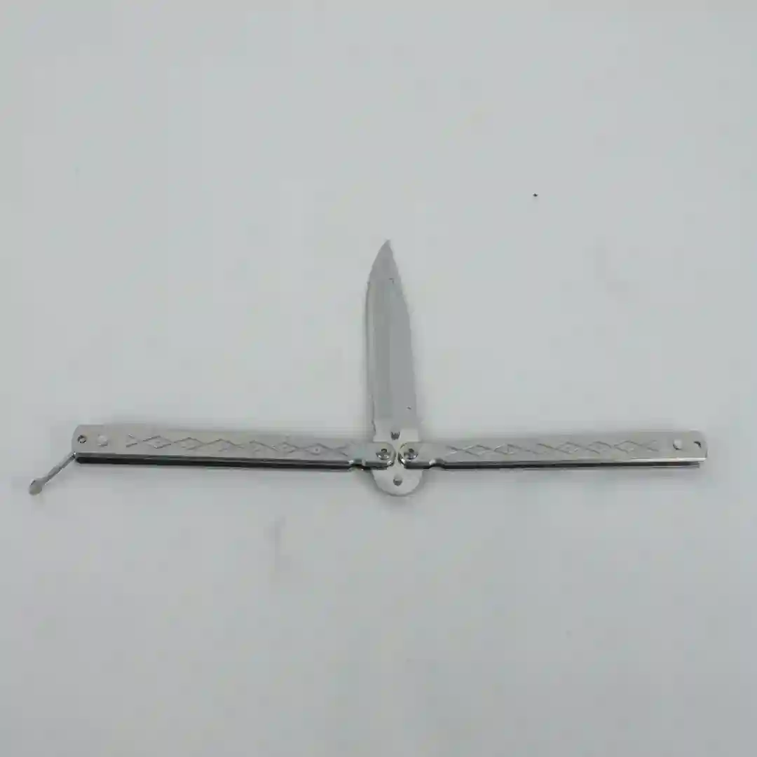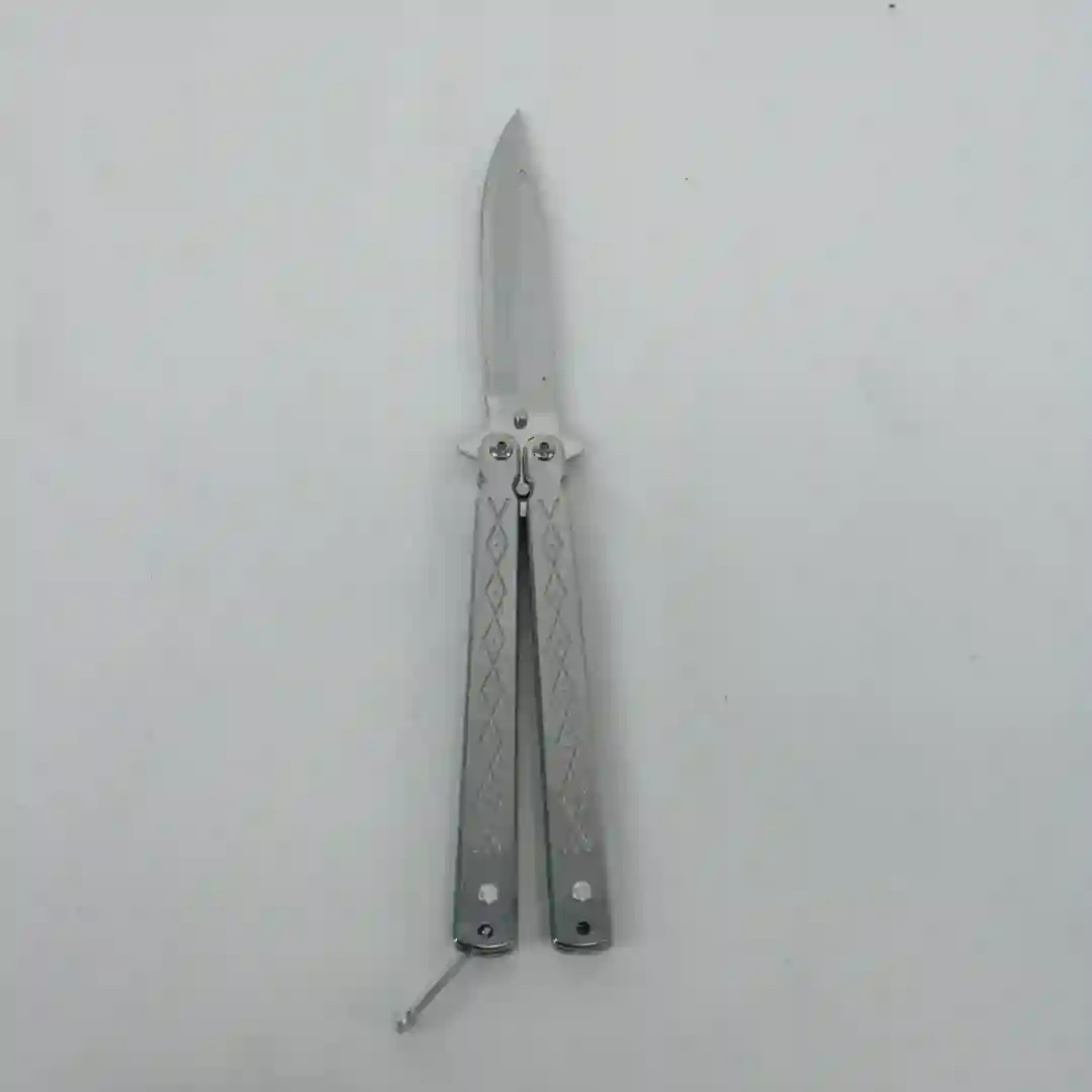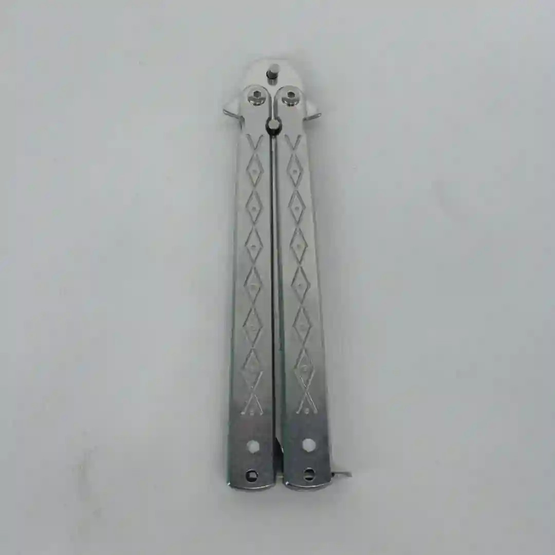 Navaja tipo mariposa (Balisong) de alto rendimiento, diseñada especialmente para coleccionistas y entusiastas de las maniobras tácticas. Su estructura metálica integral en acabado plateado ofrece un balance perfecto y una durabilidad excepcional. El diseño de sus cachas incluye perforaciones estratégicas que no solo aportan una estética moderna y técnica, sino que también optimizan el peso para un manejo fluido y preciso.