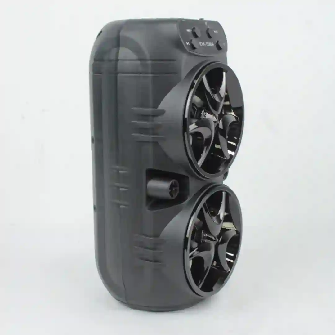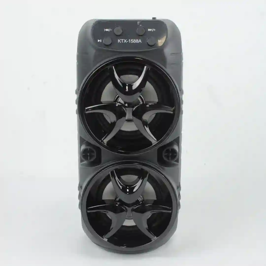 Altavoz inalámbrico portátil de doble unidad diseñado para ofrecer un sonido potente en un formato compacto. Este sistema de audio integra tecnología de conexión inalámbrica y funciones multimedia completas, ideal para disfrutar de música en cualquier entorno. Su diseño moderno incluye una rejilla protectora y controles de fácil acceso en la parte superior.